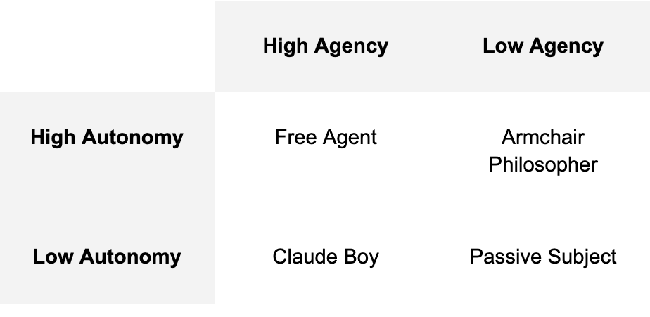These come apart. AI can increase agency while eroding autonomy. A Choice Engine that tells you what is best for you may be right. It may get you better outcomes. But if the standard by which “best” is determined has migrated from your judgment to the Engine, your autonomy has decreased. You are more powerful, but you are less free.