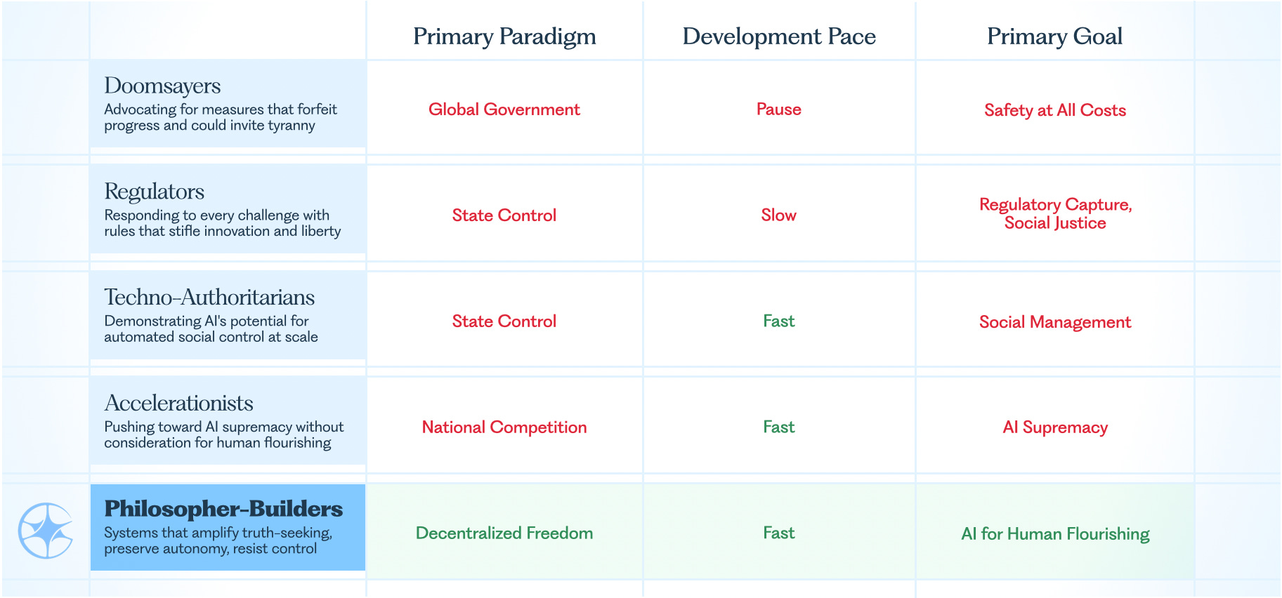 The Accelerationists push AI supremacy forward without a thought for human flourishing.