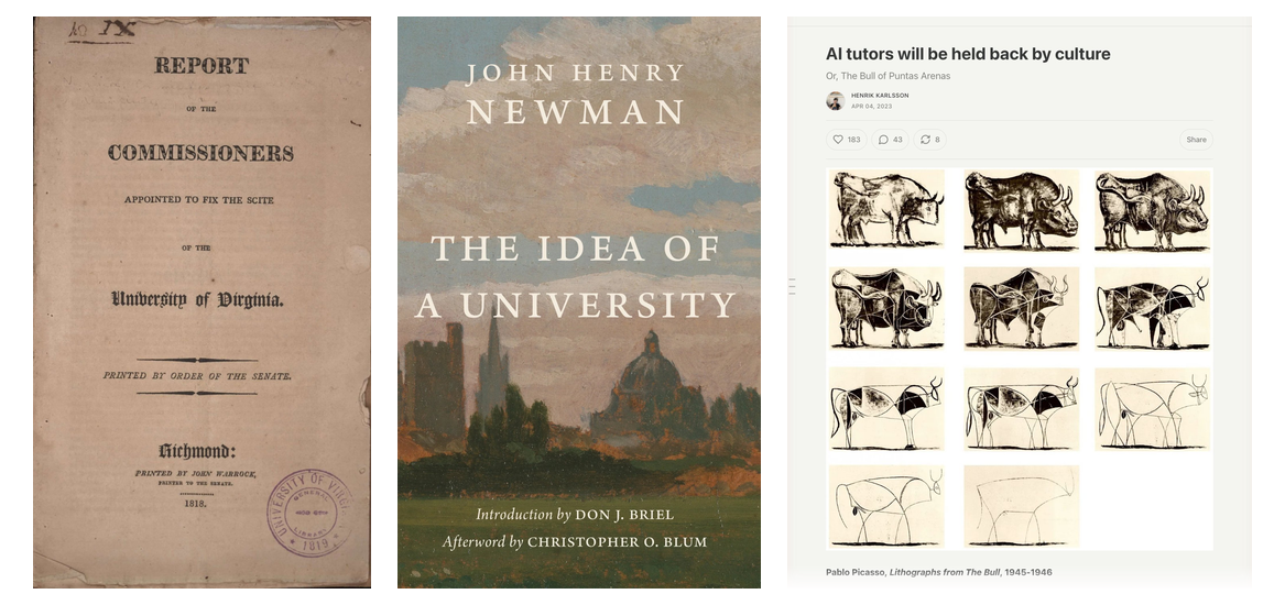 Good ideas about education are easy. Institutions that embody them are hard. This session focused on the gap. Jefferson proposes education as grafting: implanting something new onto the wild stock of human nature. Newman argues that the value of a university lies in the sheer density of its intellectual community, that students gain from living among those who represent the whole circle of knowledge even if they can never study it all.